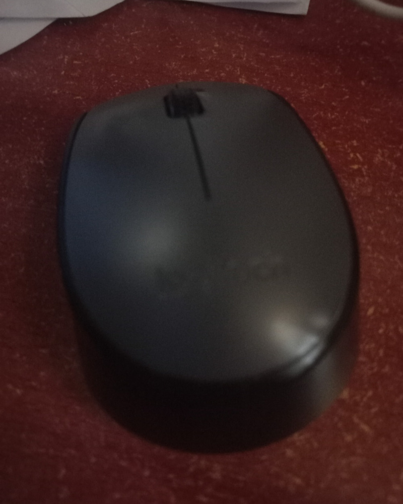 Mouse inalámbrico compacto de acabado mate en plástico negro. Diseño ambidiestro y perfil bajo con rueda de desplazamiento central y línea divisoria para botones izquierdo/derecho. Superficie lisa con ligero brillo, textura antideslizante en los laterales y base curva ergonómica para uso cómodo prolongado. Ideal para uso de oficina y portátil, compatible con sistemas Windows y macOS. Estética minimalista y construcción ligera para transporte fácil.